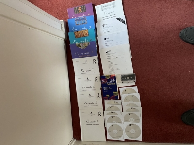 This course was studied in 2006, before much of it began being taught online. Materials include:- Course Guide, the 4 Course books, the 4 transcript booklets, 8 Activities CDs, 2 Pronunciation CDs, 1 Drama CD, Pronunciation Practice Booklet, Assessment Book & Cassette, Student Marked Assignment Book and 2006 Study Calendar. Also included is one of the two set books, the Oxford Spanish Grammar (2nd edition). There were originally 2 VHS tapes containing a short video for each block, which I don’t have. All in good condition but with highlighting & pencil markings. Price includes delivery by dpd. Price (Including Postage): £ 29.00