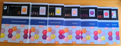 The course books from the 2009 presentation. All in very good condition. The 24 books include the Handbook, Introduction I1-I3, Group Theory GTA1-GTA4, Linear Algebra LA1-LA5, Analysis A AA1-AA4, Group Theory B GTB1-GTB3, and Analysis B AB1-AB4. Also included are the 9 Audio CDs and 2 Video DVDs. UK postage included - Royal mail Track48.