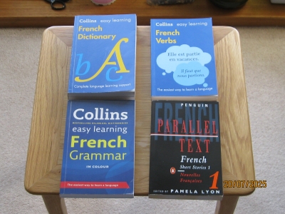 I have 3 Collins Easy Learning French books, French Dictionary, French Verbs and French Grammar. I also have a Penguin First Stage Parallel Text book of short stories. All four books are in very good condition and for sale at £25 including Postage. These books are equally suitable for the new level 1 French module L102 Introduction to French Studies (Beginners).